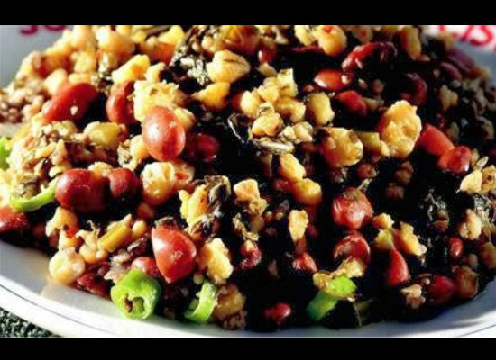 İnce kıyılmış karalahana, mısır unu, barbunya ve kurutulmuş acı biber ile yapılır. Mısır ekmeğiyle tadına doyum olmaz.